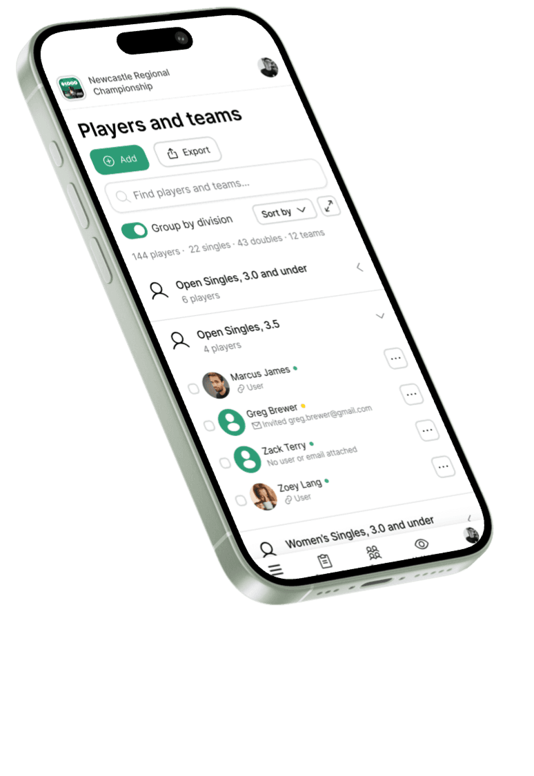 Multiple divisions, custom formats, DUPR sync. What used to take days now takes one afternoon. Game-changer for a volunteer-run club.